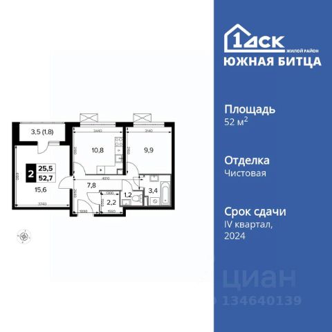 В продаже 3-комнатная квартира 77,7 кв.м. в ЖК Южная Битца.