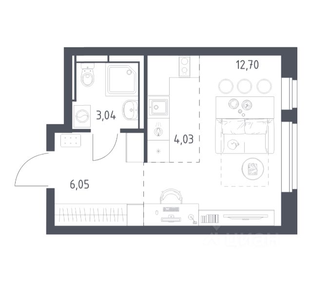 Продаётся студия 425, площадью 30,22 м², на 7 этаже в ЖК "Живописный" корпус 2. Стоимость — от 5856007 руб. Квартира без отделки, планировка односторонняя, окна на улицу.