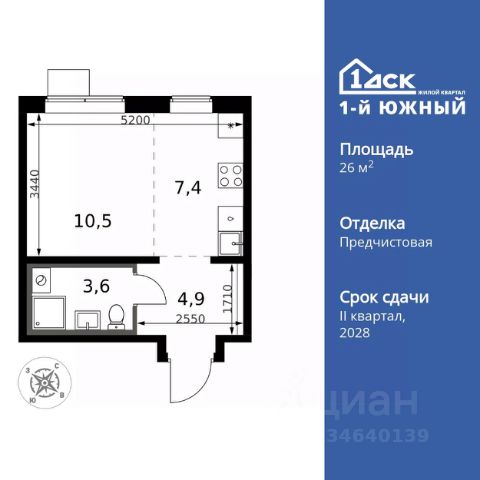 Продаётся квартира-студия номер 533 общей площадью 24.1 кв.м. на 7-м этаже 24 этажного здания. Предчистовая отделка. Цена с учётом скидки. Особенности квартиры: - Линейная планировка - максимальная функциональность и удобство. - Ниша под шкаф - компактное и удобное место для вещей. Квартира с предчистовой отделкой. Вам не придется заниматься черновыми и трудоёмкими работы, а чистовую отделку и дизайн - сделайте на свой вкус. Прямая продажа от застройщика! Жилой Комплекс класса Комфорт Плюс. Продаётся квартира-студия номер 533 общей площадью 24.1 кв.м. на 7-м этаже 24 этажного здания. - Линейная планировка - максимальная функциональность и удобство. - Ниша под шкаф - компактное и удобное место для вещей. Квартира с предчистовой отделкой. Вам не придется заниматься черновыми и трудоёмкими работы, а чистовую отделку и дизайн - сделайте на свой вкус. ЖК "1-й Донской" в 7 км от МКАД: гармония городского комфорта и природы. Квартиры на 2-3 стороны света, форма секций и разная этажность создают динамичную архитектуру. Тёплая палитра фасадов и подсветка подчеркивают образ. Рядом - Ермолинский парк, Видновский лесопарк и Жуковский парк. Природа воздействует на все уровни восприятия: от видов до звуков и ароматов. Идеальный баланс для жизни в гармонии с окружающей средой. Комплекс удобно расположен в 7 км от МКАД по трассе М-4 Дон (через Видное). Расстояние до Каширского шоссе составляет 12 км. Добраться до метро и центра Москвы позволяет развитая сеть маршрутов общественного наземного транспорта. Действующая ж/д станция Калинина Павелецкого направления в 15-17 минутах ходьбы (МЦД-5 в 2025-2026 гг). "1-й Донской": продуманная среда в развивающемся районе. На территории - муниципальные школа и 2 детских сада, поликлиника, торговый центр с площадью для мероприятий. Сеть пешеходных маршрутов ведёт к магазинам и кафе, отделённым от дорог зелёными фито-стенами. Сквозные подъезды с панорамным остеклением и входами с улицы и двора наполнены светом. Всё для комфортной жизни в шаговой доступности, от повседневных нужд до общественных пространств.