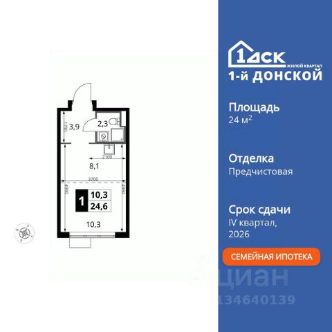 Прямая продажа от застройщика! Жилой Комплекс класса Комфорт Плюс. Продаётся квартира-студия номер 795 общей площадью 24.6 кв.м. на 8-м этаже 24 этажного здания. Предчистовая отделка. Особенности квартиры: - МЦД-5 в пешей доступности - Квартал с собственной набережной - Свои 2 детских сада и школа - Линейная планировка - максимальная функциональность и удобство. - Ниша под шкаф - компактное и удобное место для вещей. Квартира с предчистовой отделкой (White box). Вам не придется заниматься черновыми и трудоёмкими работы, а чистовую отделку и дизайн - сделайте на свой вкус. Информация о комплексе: Комплекс 1-й Донской расположен в 7 км от МКАД по трассе М-4 Дон. В нем сочетаются все плюсы комфортной городской среды и природного окружения. В проекте достаточно большой процент квартир, выходящих на 2-3 стороны света. Секции-маяки формируют у зданий визуальную L-форму, что придает застройке структуру и ритмику объемов. На ощущение динамики работает и разная этажность зданий. Теплая цветовая палитра фасадов отражает природу Дона. Вечерами дома преображаются благодаря архитектурной подсветке, выгодно выделяясь на городском фоне. Природа оказывает положительное влияние на человека на всех уровнях восприятия: через зрение, запахи, звуки, тактильные ощущения. Неподалеку от ЖК Первый Донской: Ермолинский парк, Видновский лесопарк, Жуковский парк Транспортная доступность: Комплекс удобно расположен в 7 км от МКАД по трассе М-4 Дон (через Видное). Расстояние до Каширского шоссе составляет 12 км. Добраться до метро и центра Москвы позволяет развитая сеть маршрутов общественного наземного транспорта. Действующая ж/д станция Калинина Павелецкого направления в 15-17 минутах ходьбы (МЦД-5 в 2025-2026 гг). Внутренняя инфраструктура: Проект 1-й Донской соседствует с бурно развивающимся районом, основная инфраструктура которого уже сложилась. В строительстве современных жилых комплексов в округе есть свои плюсы: здесь формируется продуманная и комфортная городская среда. Что касается внутренней инфраструктуры, на территории квартала будут расположены собственные муниципальные 2 детских садика и школа, которые помогут совместить приятное с полезным. Территория комплекса пронизана целой сетью живописных пешеходных маршрутов, позволяющих попасть в любой уголок района. Основные пути, как водится, "торговые". Они проходят вдоль магазинов, кафе и других представителей коммерции и отделяются от проезжей части зеленой "фито" - стеной. Среди крупных социальных объектов предусмотрены своя поликлиника и торговый центр с примыкающей площадью для общественных мероприятий. Уют начинается с продуманного подъезда. Сквозные подъезды наполнены светом благодаря сплошному остеклению. Вход в них есть и с улицы, и со двора.