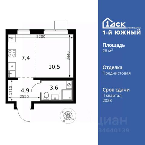 Прямая продажа от застройщика! Жилой Комплекс класса Комфорт Плюс. Продаётся квартира-студия номер 769 общей площадью 26.4 кв.м. на 8-м этаже 25 этажного здания. Предчистовая отделка. Цена с учётом скидки. Особенности квартиры: - МЦД-5 в пешей доступности - Квартал с южным садом - Свои 3 детских сада и 2 большие школы - Организуем показ в удобное для вас время! - Линейная планировка - максимальная функциональность и удобство. - Увеличенное количество окон - дополнительное освещение и свежий воздух. - Линейная кухня - функциональность и практичность в одном решении. - Ниша под шкаф - компактное и удобное место для вещей. Квартира с предчистовой отделкой. Вам не придется заниматься черновыми и трудоёмкими работы, а чистовую отделку и дизайн - сделайте на свой вкус. Информация о комплексе: ЖК от 1-го ДСК: евро формат, большие застеклённые лоджии и умный дом. Управляйте светом и техникой через Яндекс.Станцию, защита от протечек. Удачная локация: транспортная доступность и природа рядом. В каждом дворе - плодовые деревья, весной цветут яблони и груши, зимой - лыжня среди заснеженного леса. Транспортная доступность: - Общественный транспорт: Действующая ж/д станция Булатниково (в перспективе будущая МДЦ D5) в пешей доступности, всего 10-12 минут. - Личный автотранспорт: Удобный выезд на трассу М4-Дон в сторону Москвы и области 850 м, до МКАД - 1 км Внутренняя инфраструктура: "1-й Южный": продуманные подъезды с панорамным остеклением и входами с улицы и двора. Безбарьерная среда для родителей с колясками и маломобильных жителей. В каждом подъезде - колясочные, лапомойки, санузлы, место для консьержа. На территории: 3 детских сада и 2 школы под окнами, пешеходный бульвар-дендрарий для прогулок, центральная площадь для мероприятий. Всё для комфортной жизни, общения и активностей в шаговой доступности. Квартира с предчистовой отделкой - ваш дизайн без черновых работ