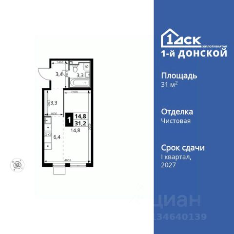 УСПЕЙ ПО СЕМЕЙНОЙ ИПОТЕКЕ БЕЗ НАЦЕНКИ! Квартиры с отделкой от 30 000 рублей в месяц! Прямая продажа от застройщика! Жилой Комплекс класса Комфорт Плюс. Продаётся квартира-студия номер 81 общей площадью 27.1 кв.м. на 9-м этаже 24 этажного здания. Отделка Whitebox. Особенности квартиры: - МЦД-5 в пешей доступности - Квартал с собственной набережной - Свои 2 детских сада и школа - Линейная планировка - максимальная функциональность и удобство. - Ниша под шкаф - компактное и удобное место для вещей. Квартира с предчистовой отделкой (White box). Вам не придется заниматься черновыми и трудоёмкими работы, а чистовую отделку и дизайн - сделайте на свой вкус. Информация о комплексе: Комплекс 1-й Донской расположен в 7 км от МКАД по трассе М-4 Дон. В нем сочетаются все плюсы комфортной городской среды и природного окружения. В проекте достаточно большой процент квартир, выходящих на 2-3 стороны света. Секции-маяки формируют у зданий визуальную L-форму, что придает застройке структуру и ритмику объемов. На ощущение динамики работает и разная этажность зданий. Теплая цветовая палитра фасадов отражает природу Дона. Вечерами дома преображаются благодаря архитектурной подсветке, выгодно выделяясь на городском фоне. Природа оказывает положительное влияние на человека на всех уровнях восприятия: через зрение, запахи, звуки, тактильные ощущения. Неподалеку от ЖК Первый Донской: Ермолинский парк, Видновский лесопарк, Жуковский парк Транспортная доступность: Комплекс удобно расположен в 7 км от МКАД по трассе М-4 Дон (через Видное). Расстояние до Каширского шоссе составляет 12 км. Добраться до метро и центра Москвы позволяет развитая сеть маршрутов общественного наземного транспорта. Действующая ж/д станция Калинина Павелецкого направления в 15-17 минутах ходьбы (МЦД-5 в 2025-2026 гг). Внутренняя инфраструктура: Проект 1-й Донской соседствует с бурно развивающимся районом, основная инфраструктура которого уже сложилась. В строительстве современных жилых комплексов в округе есть свои плюсы: здесь формируется продуманная и комфортная городская среда. Что касается внутренней инфраструктуры, на территории квартала будут расположены собственные муниципальные 2 детских садика и школа, которые помогут совместить приятное с полезным. Территория комплекса пронизана целой сетью живописных пешеходных маршрутов, позволяющих попасть в любой уголок района. Основные пути, как водится, "торговые". Они проходят вдоль магазинов, кафе и других представителей коммерции и отделяются от проезжей части зеленой "фито" - стеной. Среди крупных социальных объектов предусмотрены своя поликлиника и торговый центр с примыкающей площадью для общественных мероприятий. Уют начинается с продуманного подъезда. Сквозные подъезды наполнены светом благодаря сплошному остеклению. Вход в них есть и с улицы, и со двора.