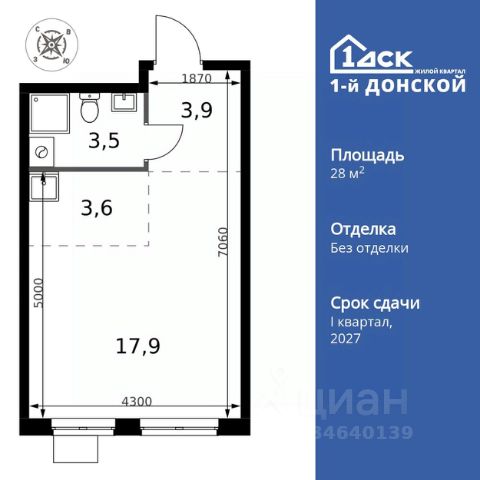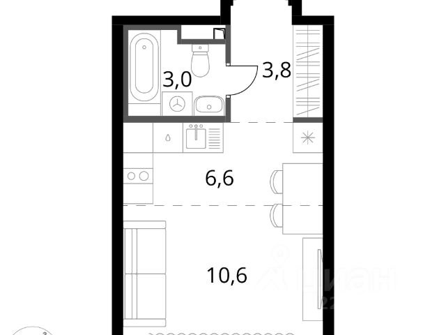 Прямая продажа от застройщика! Жилой Комплекс класса Комфорт Плюс. Продаётся квартира-студия номер 1 общей площадью 26.2 кв.м. на 2-м этаже 24 этажного дома. Без отделки. Цена с учётом скидки! Особенности квартиры: - МЦД-5 в пешей доступности - Квартал с собственной набережной - Свои 2 детских сада и школа - Линейная планировка - максимальная функциональность и удобство. Информация о комплексе: Комплекс 1-й Донской расположен в 7 км от МКАД по трассе М-4 Дон. В нем сочетаются все плюсы комфортной городской среды и природного окружения. В проекте достаточно большой процент квартир, выходящих на 2-3 стороны света. Секции-маяки формируют у зданий визуальную L-форму, что придает застройке структуру и ритмику объемов. На ощущение динамики работает и разная этажность зданий. Теплая цветовая палитра фасадов отражает природу Дона. Вечерами дома преображаются благодаря архитектурной подсветке, выгодно выделяясь на городском фоне. Природа оказывает положительное влияние на человека на всех уровнях восприятия: через зрение, запахи, звуки, тактильные ощущения. Неподалеку от ЖК Первый Донской: Ермолинский парк, Видновский лесопарк, Жуковский парк Транспортная доступность: Комплекс удобно расположен в 7 км от МКАД по трассе М-4 Дон (через Видное). Расстояние до Каширского шоссе составляет 12 км. Добраться до метро и центра Москвы позволяет развитая сеть маршрутов общественного наземного транспорта. Действующая ж/д станция Калинина Павелецкого направления в 15-17 минутах ходьбы (МЦД-5 в 2025-2026 гг). Внутренняя инфраструктура: Проект 1-й Донской соседствует с бурно развивающимся районом, основная инфраструктура которого уже сложилась. В строительстве современных жилых комплексов в округе есть свои плюсы: здесь формируется продуманная и комфортная городская среда. Что касается внутренней инфраструктуры, на территории квартала будут расположены собственные муниципальные 2 детских садика и школа, которые помогут совместить приятное с полезным. Территория комплекса пронизана целой сетью живописных пешеходных маршрутов, позволяющих попасть в любой уголок района. Основные пути, как водится, "торговые". Они проходят вдоль магазинов, кафе и других представителей коммерции и отделяются от проезжей части зеленой "фито" - стеной. Среди крупных социальных объектов предусмотрены своя поликлиника и торговый центр с примыкающей площадью для общественных мероприятий. Уют начинается с продуманного подъезда. Сквозные подъезды наполнены светом благодаря сплошному остеклению. Вход в них есть и с улицы, и со двора. Квартира-студия в новостройке в деревне Сапроново Московской области.