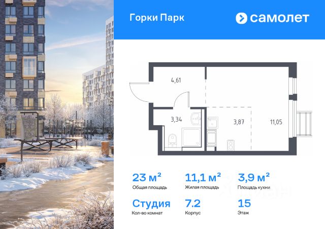 Строим кварталы для жизни с заботой о будущем. Предлагается квартира студия комфорт-класса 22,82 кв.м в корпусе 8.2 на 9 этаже, в ЖК "Горки Парк" Квартира с чистовой отделкой. Доступность дополнительных опций уточняйте у застройщика. Приобрести квартиру возможно по специальным акциям от застройщика, с текущими условиями акций можно ознакомиться в блоке "Акций". Цена динамическая и может отличаться, уточняйте актуальность у застройщика. Уединенный жилой комплекс, где хочется остаться. До МКАДа всего 10 минут на авто, а прямо рядом с домами есть лес — идеально для прогулок, занятий спортом и медитаций. Фасады 1117-этажных корпусов дополняют яркие вставки — каждый дом особенный. На территории проекта появятся ФОК и поликлиника, детские сады и школы. Наслаждаться счастливой жизнью в квартале можно уже сейчас — здесь есть готовые дома, но при этом появляются и новые корпуса. "Горки Парк" — это: 1. 10 минут на машине до МКАДа 2. 20 минут на машине до метро "Домодедовская" и 18 минут — до аэропорта Домодедово 3. Пешеходные бульвары и пространства для отдыха 4. Выход в лесопарк с благоустроенными экотропами 5. Приватные дворы без машин 6. Экомаршрут в Коробовском лесопарке рядом с домом, который соединит кварталы: "Пригород Лесное", "Горки Парк" и "Богдановский Лес" 7. Запланировано 3 школы и 6 детских садов 8. Уже построили детский сад и школу со спортивным ядром, где смогут тренироваться жители квартала 9. Поликлиника и спорткомплекс внутри проекта 10. Магазины и кофейни на первых этажах 11. Игровые площадки и воркаут-зона 12. Прогулочная зона рядом с кварталом 13. Спортивно-игровой кластер 14. Площадки для занятий йогой и игры в пинг-понг — в части дворов 15. Рабочий остров и площадка для отдыха — в части дворов 16. Веревочный панда-парк — в будущем 17. Площадка для выгула собак 18. Балконы с панорамным остеклением 19. Увеличенные окна в квартирах 20. Входы на уровне земли 21. Места для хранения велосипедов и колясок