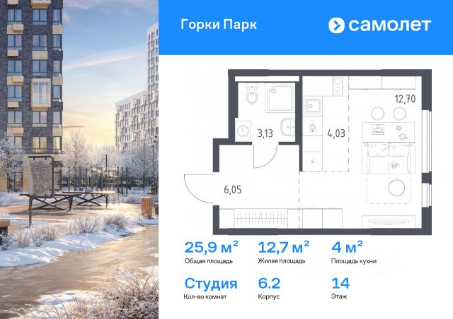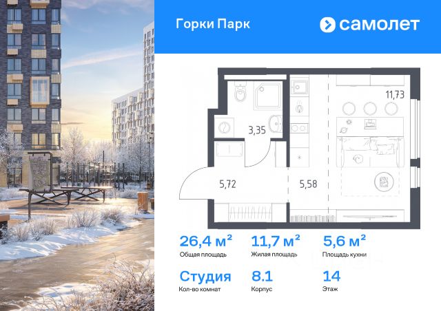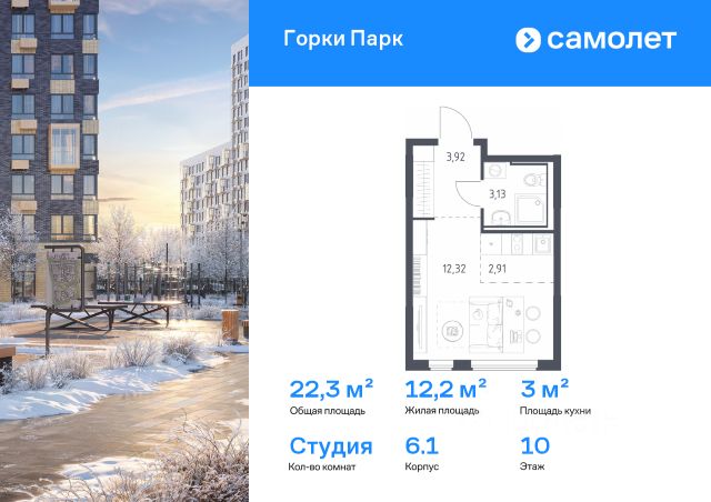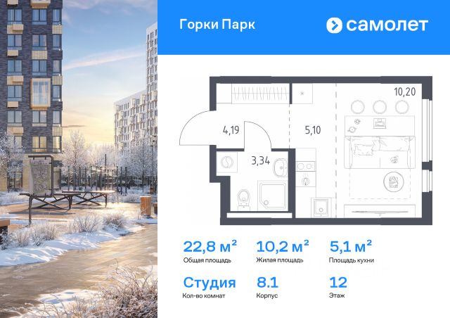 Строим кварталы для жизни с заботой о будущем. Предлагается квартира студия комфорт-класса 22,82 кв.м в корпусе 8.2 на 9 этаже, в ЖК "Горки Парк" Квартира с чистовой отделкой. Доступность дополнительных опций уточняйте у застройщика. Приобрести квартиру возможно по специальным акциям от застройщика, с текущими условиями акций можно ознакомиться в блоке "Акций". Цена динамическая и может отличаться, уточняйте актуальность у застройщика. Уединенный жилой комплекс, где хочется остаться. До МКАДа всего 10 минут на авто, а прямо рядом с домами есть лес — идеально для прогулок, занятий спортом и медитаций. Фасады 1117-этажных корпусов дополняют яркие вставки — каждый дом особенный. На территории проекта появятся ФОК и поликлиника, детские сады и школы. Наслаждаться счастливой жизнью в квартале можно уже сейчас — здесь есть готовые дома, но при этом появляются и новые корпуса. "Горки Парк" — это: 1. 10 минут на машине до МКАДа 2. 20 минут на машине до метро "Домодедовская" и 18 минут — до аэропорта Домодедово 3. Пешеходные бульвары и пространства для отдыха 4. Выход в лесопарк с благоустроенными экотропами 5. Приватные дворы без машин 6. Экомаршрут в Коробовском лесопарке рядом с домом, который соединит кварталы: "Пригород Лесное", "Горки Парк" и "Богдановский Лес" 7. Запланировано 3 школы и 6 детских садов 8. Уже построили детский сад и школу со спортивным ядром, где смогут тренироваться жители квартала 9. Поликлиника и спорткомплекс внутри проекта 10. Магазины и кофейни на первых этажах 11. Игровые площадки и воркаут-зона 12. Прогулочная зона рядом с кварталом 13. Спортивно-игровой кластер 14. Площадки для занятий йогой и игры в пинг-понг — в части дворов 15. Рабочий остров и площадка для отдыха — в части дворов 16. Веревочный панда-парк — в будущем 17. Площадка для выгула собак 18. Балконы с панорамным остеклением 19. Увеличенные окна в квартирах 20. Входы на уровне земли 21. Места для хранения велосипедов и колясок