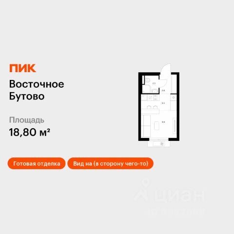 Продаётся квартира-студия площадью 20,7 кв.м на 12 этаже 25 этажного дома (Корпус 48, Секция 4) проекта ПИК Восточное Бутово. Светлый просторный подъезд на уровне земли, функциональная планировка, большие окна, предчистовая отделка. Жилой квартал "Восточное Бутово" расположен в 5 км от МКАД по Симферопольскому шоссе, в Ленинском районе Московской области. Это экологически благоприятное место по соседству с Бутовским лесопарком. В 25 минутах на машине - станции метро и МЦД "Бутово". В "Восточном Бутово" уже открылись пять детских садов из десяти запланированных и одна школа из четырёх. Внутри квартала будет две поликлиники, одна из которых уже работает. В проекте два пешеходных бульвара - по одному из них уже можно гулять и кататься на велосипеде. В закрытых дворах-парках не будет автомобилей - мы построим многоуровневый паркинг, чтобы сделать район ещё более комфортным и безопасным для жителей. Артикул 641648 (Застройщик ООО "Лотан")