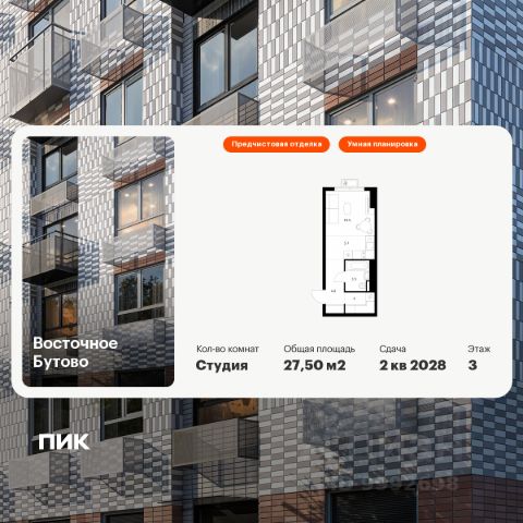 Продаётся квартира-студия площадью 20,7 кв.м на 2 этаже 25 этажного дома (Корпус 48, Секция 4) проекта ПИК Восточное Бутово. Светлый просторный подъезд на уровне земли, функциональная планировка, большие окна, предчистовая отделка. Жилой квартал "Восточное Бутово" расположен в 5 км от МКАД по Симферопольскому шоссе, в Ленинском районе Московской области. Это экологически благоприятное место по соседству с Бутовским лесопарком. В 25 минутах на машине - станции метро и МЦД "Бутово". В "Восточном Бутово" уже открылись пять детских садов из десяти запланированных и одна школа из четырёх. Внутри квартала будет две поликлиники, одна из которых уже работает. В проекте два пешеходных бульвара - по одному из них уже можно гулять и кататься на велосипеде. В закрытых дворах-парках не будет автомобилей - мы построим многоуровневый паркинг, чтобы сделать район ещё более комфортным и безопасным для жителей. Артикул 641725 (Застройщик ООО "Лотан")