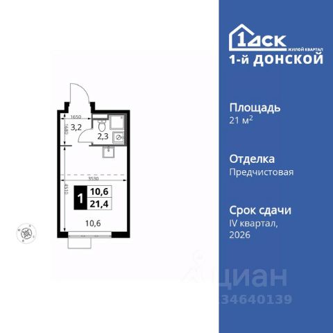 Прямая продажа от застройщика! Жилой Комплекс класса Комфорт Плюс. Продаётся квартира-студия номер 687 общей площадью 21.4 кв.м. на 20-м этаже 24 этажного дома. Отделка Whitebox. Особенности квартиры: - МЦД-5 в пешей доступности - Квартал с собственной набережной - Свои 2 детских сада и школа - Линейная планировка - максимальная функциональность и удобство. - Ниша под шкаф - компактное и удобное место для вещей. Квартира с предчистовой отделкой (White box). Вам не придется заниматься черновыми и трудоёмкими работы, а чистовую отделку и дизайн - сделайте на свой вкус. Информация о комплексе: Комплекс 1-й Донской расположен в 7 км от МКАД по трассе М-4 Дон. В нем сочетаются все плюсы комфортной городской среды и природного окружения. В проекте достаточно большой процент квартир, выходящих на 2-3 стороны света. Секции-маяки формируют у зданий визуальную L-форму, что придает застройке структуру и ритмику объемов. На ощущение динамики работает и разная этажность зданий. Теплая цветовая палитра фасадов отражает природу Дона. Вечерами дома преображаются благодаря архитектурной подсветке, выгодно выделяясь на городском фоне. Природа оказывает положительное влияние на человека на всех уровнях восприятия: через зрение, запахи, звуки, тактильные ощущения. Неподалеку от ЖК Первый Донской: Ермолинский парк, Видновский лесопарк, Жуковский парк Транспортная доступность: Комплекс удобно расположен в 7 км от МКАД по трассе М-4 Дон (через Видное). Расстояние до Каширского шоссе составляет 12 км. Добраться до метро и центра Москвы позволяет развитая сеть маршрутов общественного наземного транспорта. Действующая ж/д станция Калинина Павелецкого направления в 15-17 минутах ходьбы (МЦД-5 в 2025-2026 гг). Внутренняя инфраструктура: Проект 1-й Донской соседствует с бурно развивающимся районом, основная инфраструктура которого уже сложилась. В строительстве современных жилых комплексов в округе есть свои плюсы: здесь формируется продуманная и комфортная городская среда. Что касается внутренней инфраструктуры, на территории квартала будут расположены собственные муниципальные 2 детских садика и школа, которые помогут совместить приятное с полезным. Территория комплекса пронизана целой сетью живописных пешеходных маршрутов, позволяющих попасть в любой уголок района. Основные пути, как водится, "торговые". Они проходят вдоль магазинов, кафе и других представителей коммерции и отделяются от проезжей части зеленой "фито" - стеной. Среди крупных социальных объектов предусмотрены своя поликлиника и торговый центр с примыкающей площадью для общественных мероприятий. Уют начинается с продуманного подъезда. Сквозные подъезды наполнены светом благодаря сплошному остеклению. Вход в них есть и с улицы, и со двора.