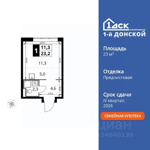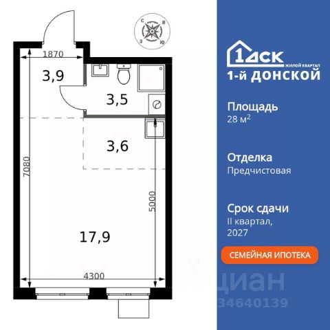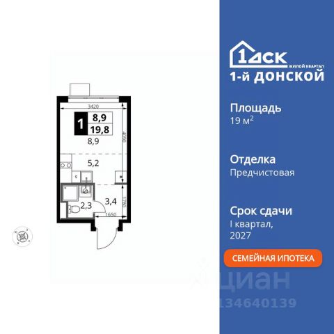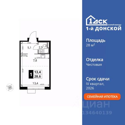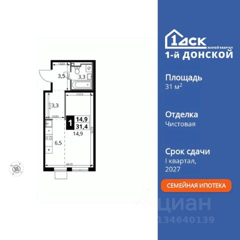 Прямая продажа от застройщика! Жилой Комплекс класса Комфорт Плюс. Продаётся квартира-студия номер 349 общей площадью 28.9 кв.м. на 9-м этаже 24 этажного здания. Предчистовая отделка. Цена с учётом скидки. Особенности квартиры: - МЦД-5 в пешей доступности - Квартал с собственной набережной - Свои 2 детских сада и школа - Организуем показ в удобное для вас время! - Линейная планировка - максимальная функциональность и удобство. Квартира с предчистовой отделкой. Вам не придется заниматься черновыми и трудоёмкими работы, а чистовую отделку и дизайн - сделайте на свой вкус. Информация о комплексе: ЖК "1-й Донской" в 7 км от МКАД: гармония городского комфорта и природы. Квартиры на 2-3 стороны света, форма секций и разная этажность создают динамичную архитектуру. Тёплая палитра фасадов и подсветка подчеркивают образ. Рядом - Ермолинский парк, Видновский лесопарк и Жуковский парк. Природа воздействует на все уровни восприятия: от видов до звуков и ароматов. Идеальный баланс для жизни в гармонии с окружающей средой. Транспортная доступность: Комплекс удобно расположен в 7 км от МКАД по трассе М-4 Дон (через Видное). Расстояние до Каширского шоссе составляет 12 км. Добраться до метро и центра Москвы позволяет развитая сеть маршрутов общественного наземного транспорта. Действующая ж/д станция Калинина Павелецкого направления в 15-17 минутах ходьбы (МЦД-5 в 2025-2026 гг). Внутренняя инфраструктура: "1-й Донской": продуманная среда в развивающемся районе. На территории - муниципальные школа и 2 детских сада, поликлиника, торговый центр с площадью для мероприятий. Сеть пешеходных маршрутов ведёт к магазинам и кафе, отделённым от дорог зелёными фито-стенами. Сквозные подъезды с панорамным остеклением и входами с улицы и двора наполнены светом. Всё для комфортной жизни в шаговой доступности, от повседневных нужд до общественных пространств. Квартира с предчистовой отделкой - ваш дизайн без черновых работ