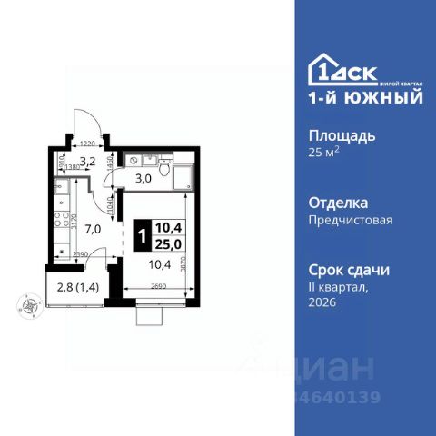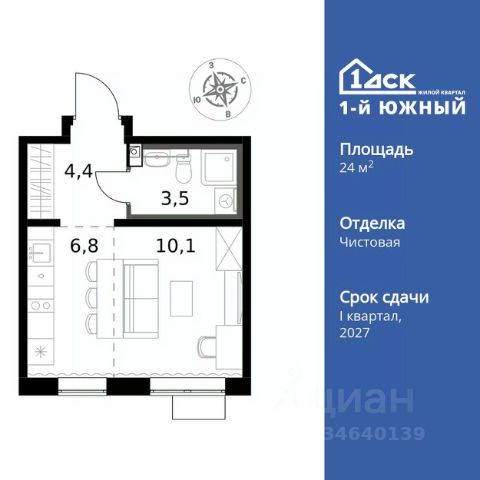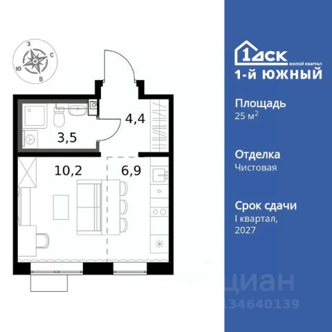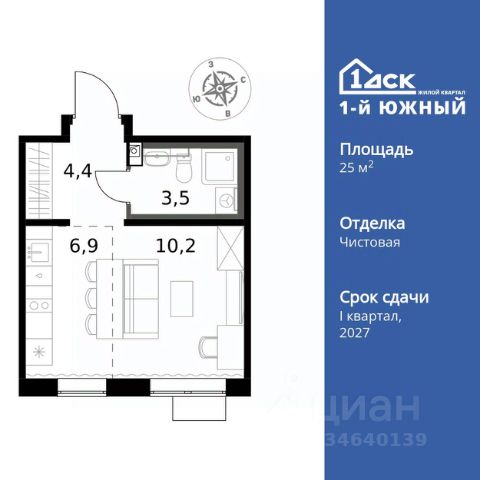 Прямая продажа от застройщика! Жилой Комплекс класса Комфорт Плюс. Продаётся квартира-студия номер 369 общей площадью 24.9 кв.м. на 8-м этаже 25 этажного здания. Чистовая отделка. Цена с учётом скидки. Особенности квартиры: - МЦД-5 в пешей доступности - Квартал с южным садом - Свои 3 детских сада и 2 большие школы - Линейная планировка - максимальная функциональность и удобство. - Просторная мягкая зона - комфорт и уют для отдыха всей семьи. - Возможность добавить спальное место - дополнительный комфорт для гостей. - Ниша под шкаф - компактное и удобное место для вещей. - Лоджия - уютное место для отдыха и тишины. Информация о комплексе: Одно из преимуществ проектов 1- ДСК большие застекленные лоджии. Другое преимущество честный евро-формат. Во всем проекте предусмотрена система Умный дом. В состав устанавливаемого пакета устройств входит: WiFi реле для управления группами потребителей, беспроводной кран перекрытия с эл. приводом, беспроводной сенсор протечки, Яндекс Станция Мини. Его расположение можно назвать удачным за счет транспортной доступности и близости к природным объектам. По соседству лес, а в каждом дворе плодовые деревья. Весной квартал окутывает бело-розовое облако: это цветут яблони, груши, сливы. К августу в воздух наполняется ароматом созревших плодов. Зимой среди покрытых инеем деревьев протянулась лыжня. Транспортная доступность: - Общественный транспорт: Действующая ж/д станция Булатниково (в перспективе будущая МДЦ D5) в пешей доступности, всего 10-12 минут. - Личный автотранспорт: Удобный выезд на трассу М4-Дон в сторону Москвы и области 850 м, до МКАД - 1 км Внутренняя инфраструктура: Красивые продуманные подъезды - еще одно преимущество проекта 1-й Южный. Вход в сквозные подъезды есть и с улицы, и со двора. Благодаря сплошному остеклению в них всегда светло и уютно. Подъезды расположены на уровне земли, поэтому и молодым родителям с коляской, и жильцам с ограниченными возможностями вход и выход неудобств не доставят. В помещении предусмотрено место под стойку ресепшен с выводом инженерных сетей. Если жильцы решат на общем собрании, что необходим охранник или консьерж, организовать для них рабочее место можно быстро и с минимальными затратами. В подъездах предусмотрены уборные для детей и взрослых. Колясочные в каждом подъезде позволяют поддерживать порядок и чистоту на этажах. На случай прогулки с четвероногим питомцем в непогоду в подъездах устроены лапомойки. Во дворах и на общественных территориях 1-ого Южного столько всего интересного для юных обитателей. Собственные 3 детских сада и 2 больших школы буквально под окнами Изюминка проекта - пешеходный бульвар-дендрарий, он идеален для семейных прогулок. По сторонам прогулочной зоны разместились точки для самых разнообразных активностей. Центральная площадь на бульваре предназначена для проведения всесезонных мероприятий, объединяющих жильцов.