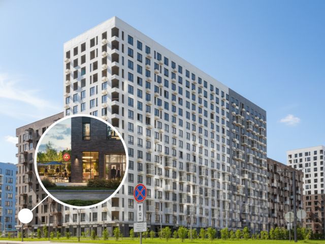 1051402 . Предлагаем помещение свободного назначения формата street-retail с арендатором кафе/шаурма "Заверните" в ЖК "Горки Парк", площадью 73.5 кв. м, расположенное на первом этаже 17-этажного жилого дома. Без комиссии для покупателя.