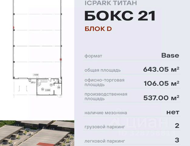 Лот 966158 Предложение от Собственника! Продается современный складской комплекс, расположенный на территории Индустриального Парка Андреевский. Объект общей площадью 3080 кв.м. включает в себя три капитальных здания: два складских помещения площадью 1400 и 1500...