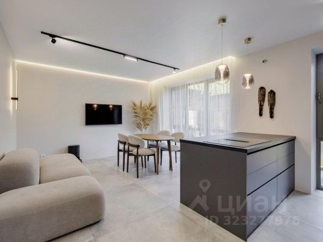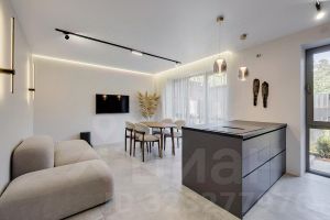 - просторная гостиная с выходом на веранду и на участок (4,8х22 м) с газоном, кустарниками, цветами и зоной барбекю