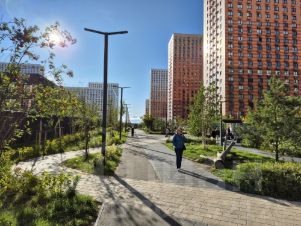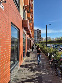 Находится на пересечении двух главных точек притяжения района: пешеходного бульвара и большой школы с бассейном. Вход в школу находится на расстоянии более 50 метров, что позволяет получить лицензию на алкоголь. В сторону бульвара и школы будут направляться жители со всего микрорайона, в том числе из ранее построенных домов и весь этот трафик будет проходить через вход в наше торговое помещение.