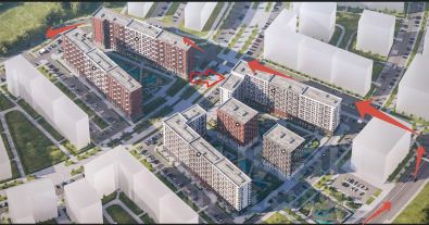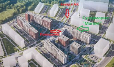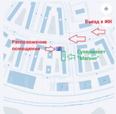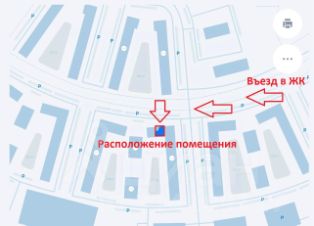 Помещение расположено на 1й линии, на центральной улице в середине жилого массива на пересечении пешеходного бульвара и дороги в непосредственной близости от въезда в жилой комплекс.