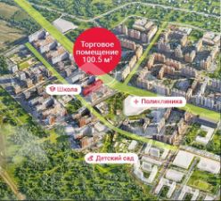957709 . Предлагаем помещение свободного назначения формата street-retail в ЖК "Пригород Лесное", площадью 100.5 кв. м, расположенное на первом этаже 17-этажного жилого дома.