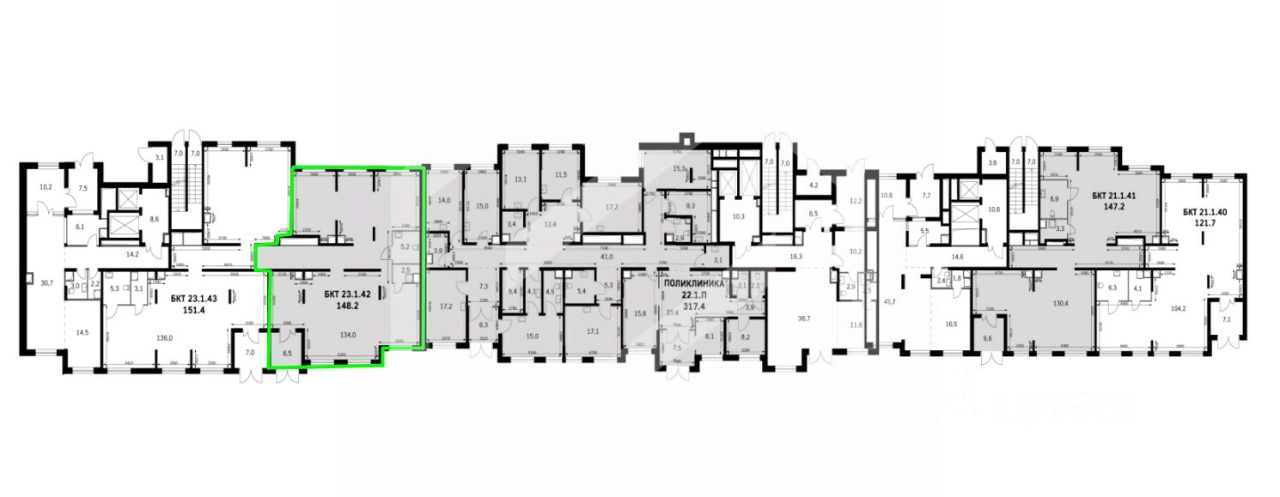 802020 . Предлагаем помещение свободного назначения формата Street Retail, площадью 148,2 кв. м, расположенное на первом этаже жилого дома в ЖК "Римский". Корпус 8.