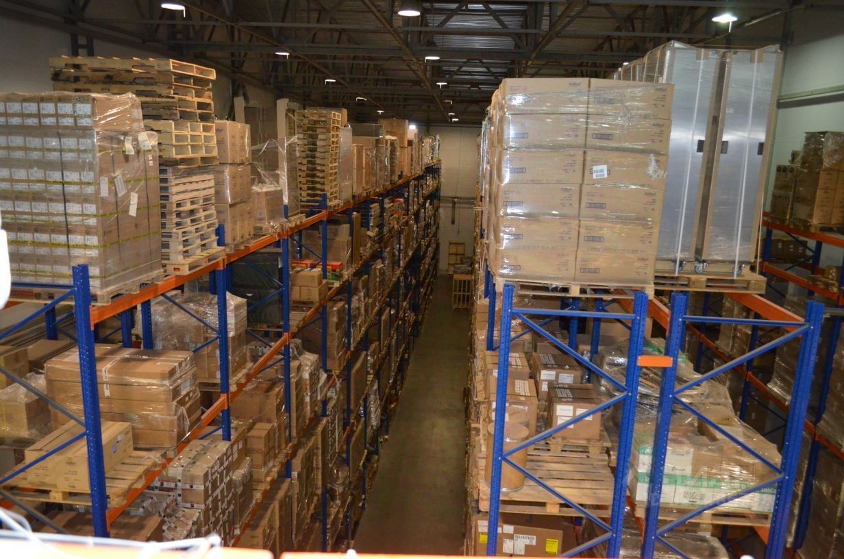 Площадь по полу 1325 квм, установлены полетные стеллажи Кифато на 2000 пм.,