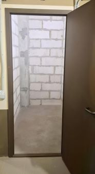 Дверь открывается наружу, всё внутреннее пространство можно использовать. На потолке нет никаких труб.