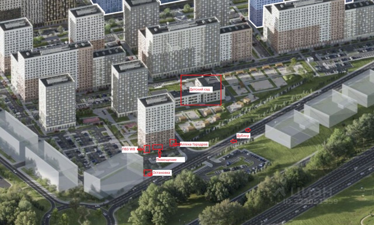 Помещение находится на дублере, возле остановки, большой пешеходный поток в комплекс.