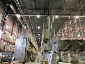 Ворота автоматические — одни для заезда в склад, двое остальных под погрузку.