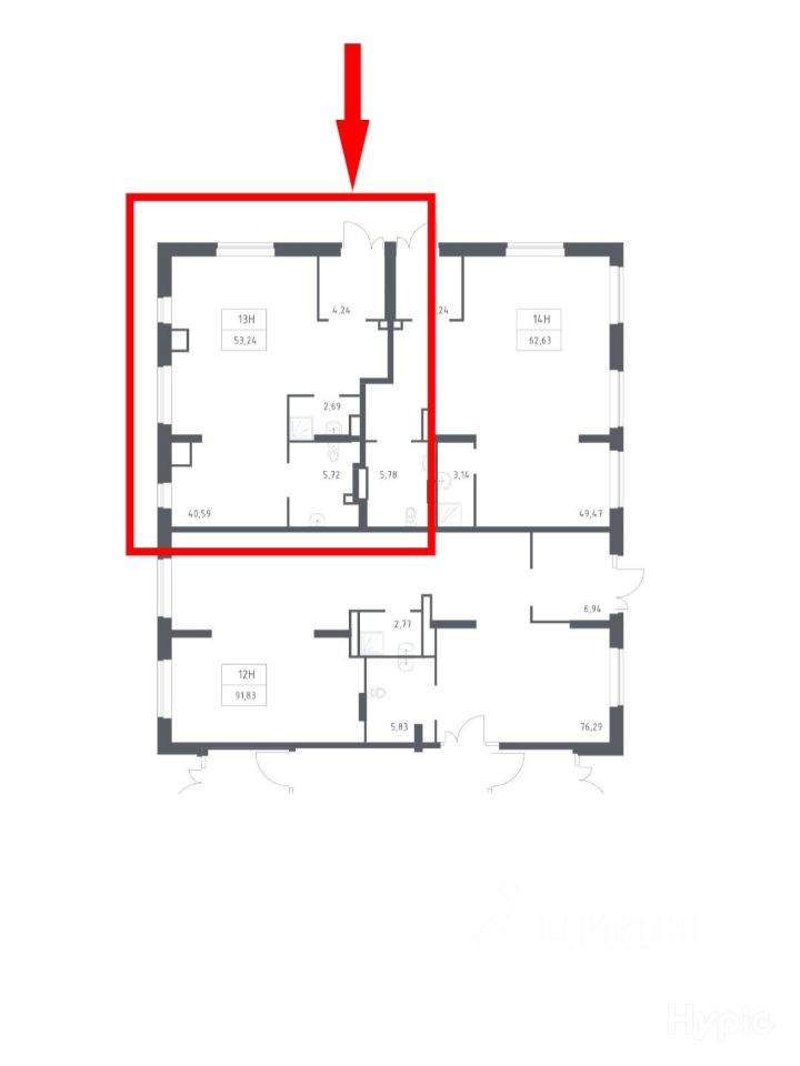 Корпус 13.2. Площадь-53 м².