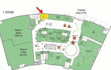 Помещение находится не далеко от главного входа на 1 этаже ТРЦ.