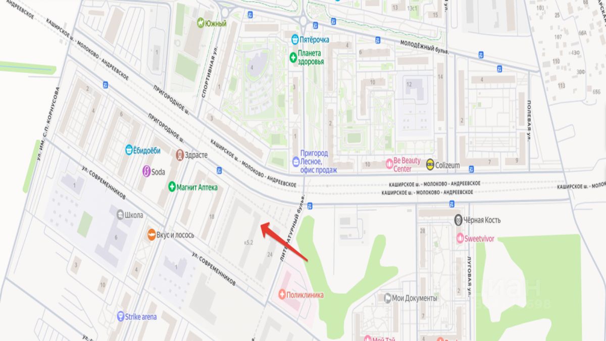 Крупный жилой массив - видное просматриваемое место на пути трафика между микрорайонами. Пригород Лесное , новый ЖК, 20 корпусов. Введено ранее и активно заселяется 9 корпусов. Корпус, в котором помещение, сдан и заселяется с июля. Рядом будет сдано еще несколько домов в ближайшее время. Через дом построена новая поликлиника.