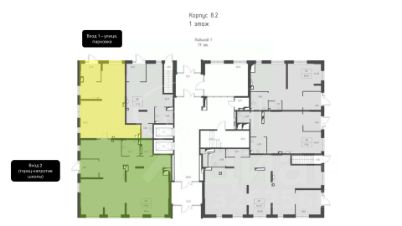 Помещение торцевое, прекрасно просматривается благодаря витринным окнам сразу на три стороны. Два входа расположены с разных направлений: один — напротив школы в 73 метрах от здания, что обеспечивает стабильный поток людей, второй — со стороны парковки, что удобно для клиентов и операторов бизнеса. Есть комфортная зона для разгрузки.