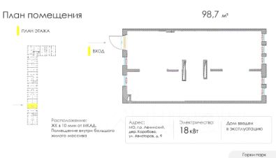 Общая площадь 98,7 м2. Большие окна. Электрическая мощность 18 Квт с возможностью увеличения.