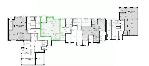 -ЖК состоит из 7 корпусов переменной этажности (от 4 до 16 этажей), рассчитанных на 5 097 квартир;