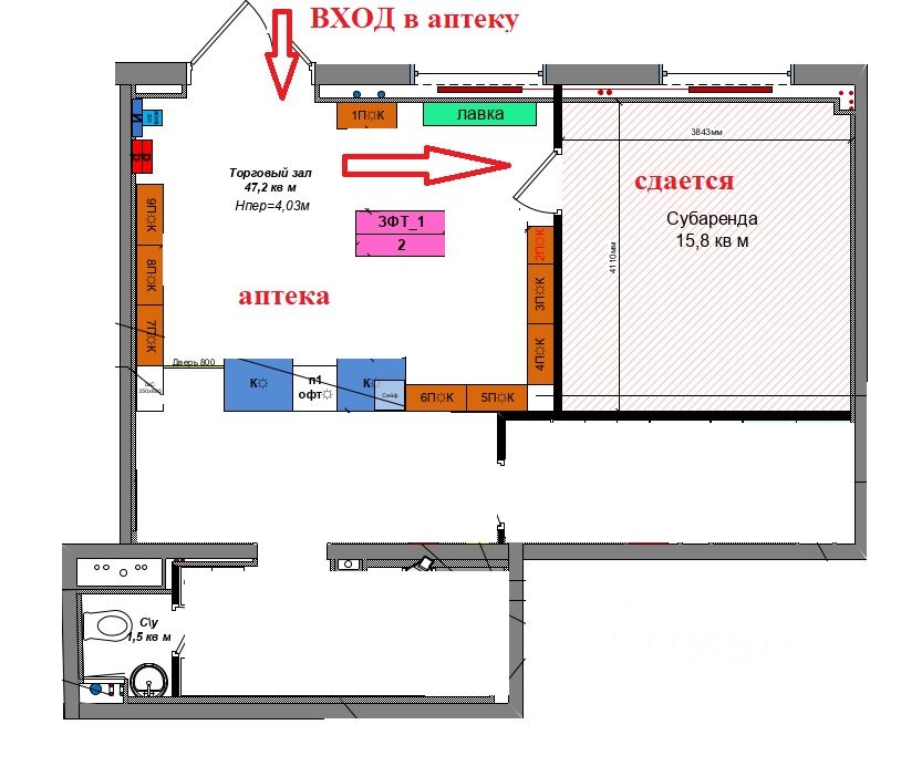 Сдается помещение площадью 15,8 кв.м. в аптеке Здравсити (смотрите план). Стену установим после нахождения арендатора. В арендную плату все включено. Рассмотрим все предложения, кроме общепита и табака. Звонки принимаются в рабочие дни с пн-пт с 9.15 до 18.00.