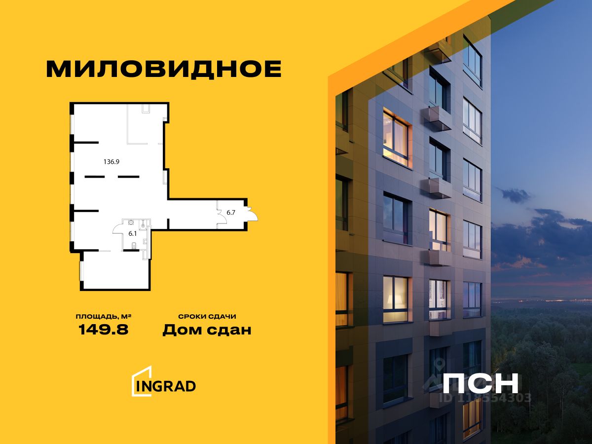 Готовое торговое помещение площадью 149,8 кв.м. в квартале Миловидное. В квартале 2 корпуса, 768 квартир, 2100 жителей. Полностью сдан, идет заселение.