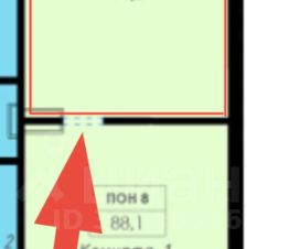Помещение 44 метра квадратной зальной формы.