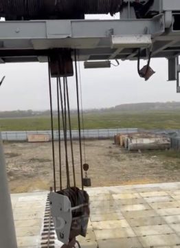 имеется Козловой кран, машина для залива цемента в формы, помещение для сушки плит.