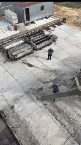 На территории 2000 м2, расположено производство бетонных плит, 59 плит в день, 8 пагги в день.