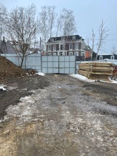 Участок ровный, внутри участка проложена дорога бетонными плитами.