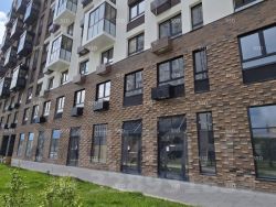 1 этаж 17-ти этажного жилого дома, общей площадью 87.4 м², высота потолков 4 м, электрическая мощность до 180 Вт/м2 (возможно увеличение), отдельная входная группа, витринное остекление, зальная планировка, первая линия, парковка перед зданием.