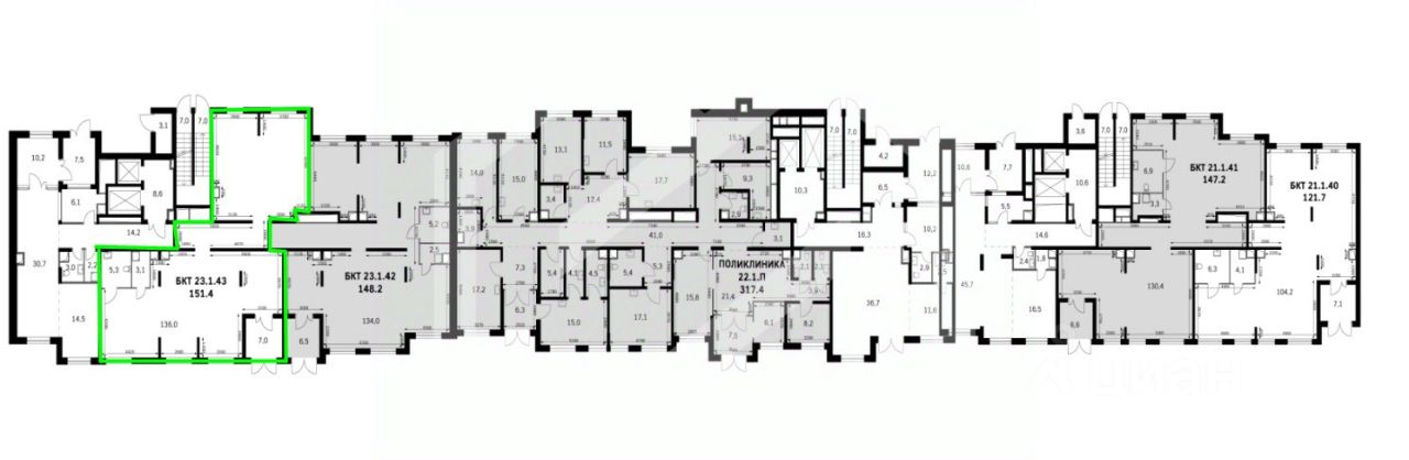 862428. Предлагаем помещение свободного назначения в ЖК "UP квартал Римский", площадью 151.4 кв. м, расположенное на первом этаже 18-этажного жилого дома. Корпус: 8.