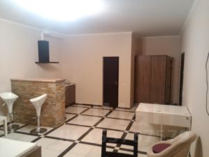 В трёх этажном доме на цокольном этаже сдается квартира студийного плана. В комнате минимум современной мебели - двухспальная кровать, шкаф, ТВ. Санузел совмещённый ( душ-кабина ). На полу паркет, плитка. Стеклопакеты. кондиционер. Отдельно постирочная зона. Есть возможность поставить машину во дворе. Собственник рассматривает как семью так и одиночек, без маленьких детей и животных. Подробности по телефону.