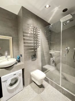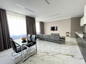 Квартира с оригинальным планировочным решением, технологически укомплектована, выполнен абсолютно новый чистовой ремонт. В квартире 2 сан. узла(один из которых общий - с просторной душевой с верхним душем, другой приватный в мастер-спальне с гидромассажной ванной). Гостиная представлена большим единым пространством с кухней, обеденной зоной и лаунжем, разделяя между собой 2 спальни. Материалы в отделке исключительно европейские(Италия, Германия). Плитка Refin ceramics(Италия), раковины и унитазы Belbagno(Италия), сантехника вся Hansgrohe(Германия). В каждой комнате тёплый пол и тв. Интернет по wi-fi. Все освещение светодиодное, управляемое(приложение в смартфоне и пульт). Кухня содержит весь набор встроенной техники(духовой шкаф, микроволновка, посудомоечная машина). Видеодомофон от калитки за периметром ЖК. При входе в квартиру организовано гардеробное пространство. Квартира сдаётся под ключ, со всей мебелью и техникой. Шторы с эффектом полного затемнения. Периметр ЖК ограждён и находится под охраной и видеонаблюдением. Выход с территории на все стороны. На территории комплекса имеется поликлиника, стоматология, детский сад, магазин, кафе, игровой клуб для детей. Паркинг на улице во дворе или отдельная аренда машиноместа в подземном гараже. Только по договору аренды с соблюдением налогового законодательства арендодателем. Коммунальные услуги отдельно по счетчикам. Сдаёт собственник.