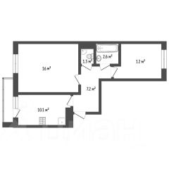 2-хкомнатная квартира в ЖК "Видный город", 4 этаж 8-миэтажного дома. Комнаты 12 и 16 кв.м., кухня 10 кв.м, 3 спальных места. Большую комнату можно зонировать стеллажом или шторой.