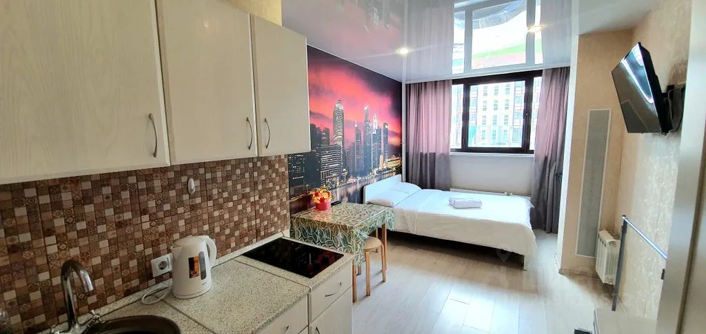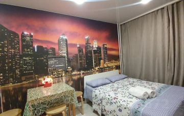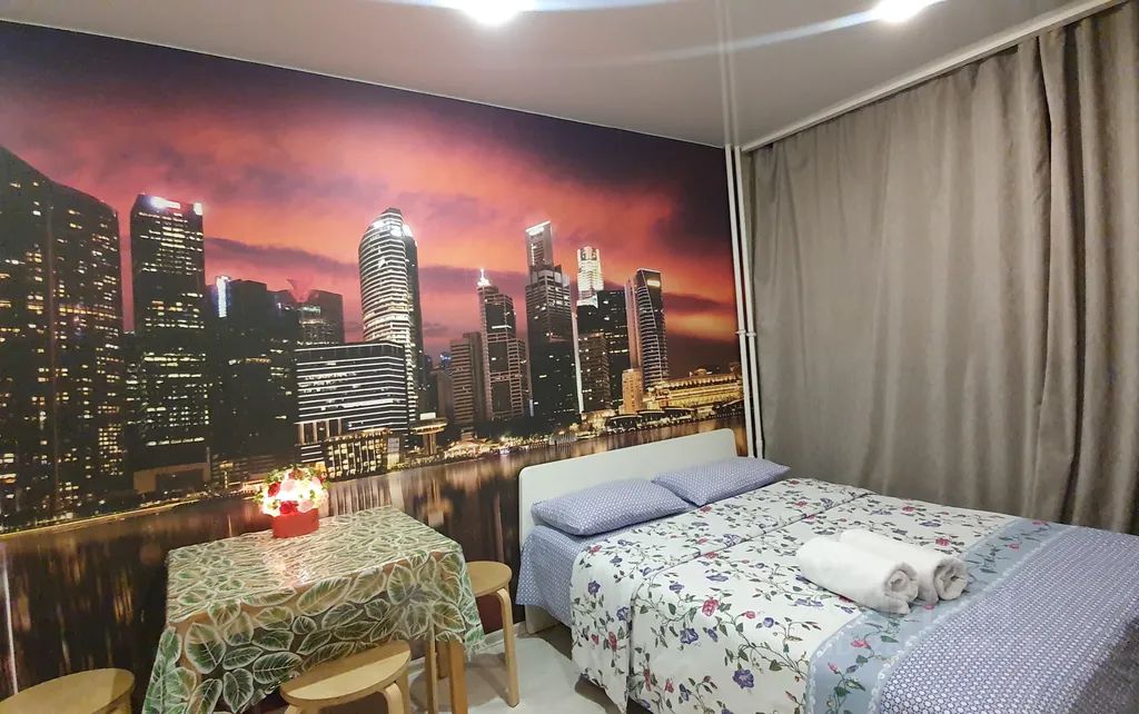 В квартире имеется удобная двуспальная кровать, где вы сможете комфортно отдохнуть после насыщенного дня.