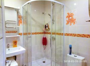 В ванной комнате есть всё необходимое для комфортного принятия душа и два махровых полотенца.