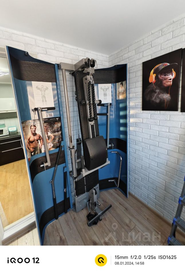 - Лоджия: утеплена, на лоджии есть многофункциональный тренажёр и рабочее место, подведён кабель с интернетом, на окнах детские замки.
