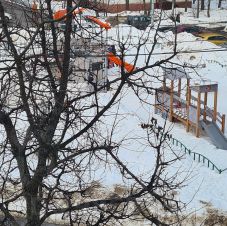 Одно окно на детскую площадку. Много мест для парковки авто.