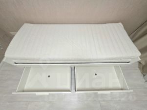 Малая спальня теплая, уютная. Раздвижная двуспальная кровать с ящиками, полка, текстиль.