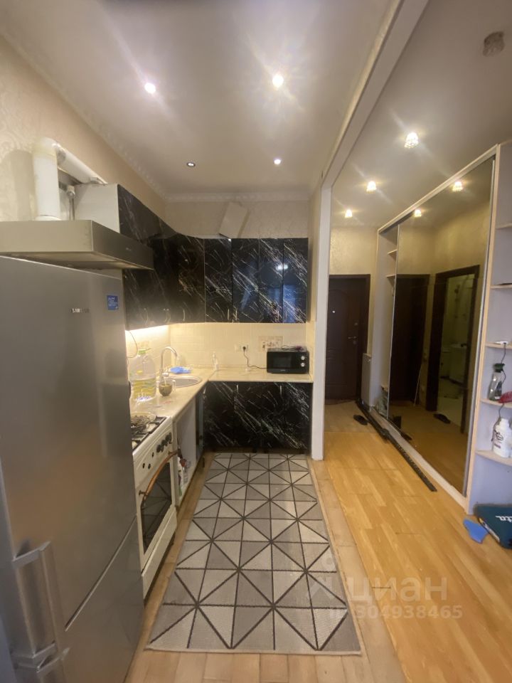В кухне есть кухонный гарнитур, холодильник, плита, микроволновая печь,