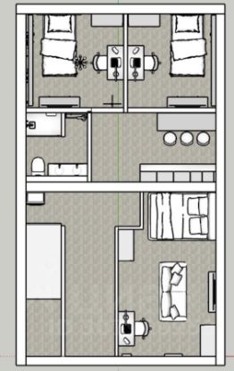 Дом состоит из двух этажей, разделенных на две отдельные квартиры.