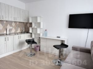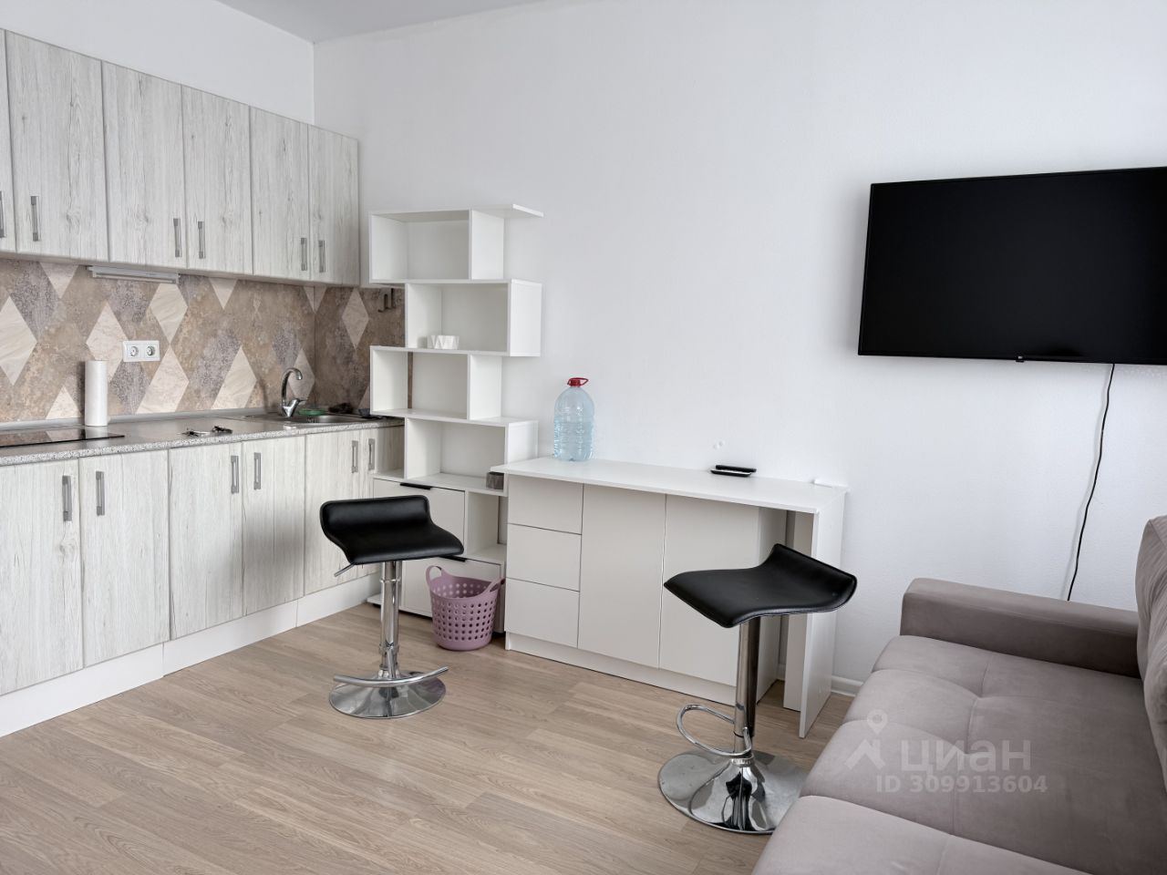 Сдается студия в новом доме. Квартира оборудована всей необходимой мебелью и техникой для комфортного проживания. В зоне кухни кухонный гарнитур с варочной панелью, холодильником и микроволновой печью, в гостиной- рабочая зона, спальное место, телевизор. Дополнительно имеется чайник, утюг, сушилка, мультиварка.